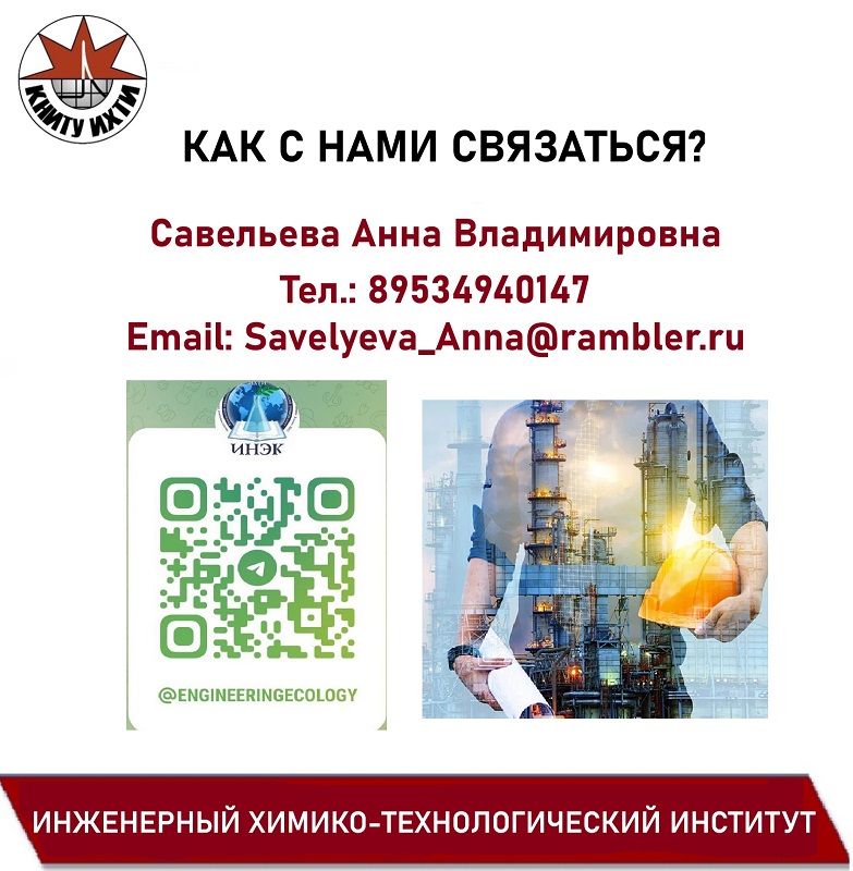 Будущее начинается здесь Экология – это не просто наука, это миссия. Если ты хочешь разрабатывать чистые безопасные технологии, внедрять «зелёные решения» и быть востребованным специалистом в эпоху устойчивого развития – присоединяйся к нам! Готов к вызову? Стань частью команды, которая создаёт будущее! Кафедра "Инженерная экология" – где теория встречается с реальными природоохранными действиями по защите окружающей среды! Направления обучения на нашей кафедре: Бакалавриат: 20.03.01 Техносферная безопасность. (Профиль: Инженерная защита окружающей среды) Программа готовит высококвалифицированных специалистов для решения комплексных задач в области: 18.03.02 Энерго-и ресурсосберегающие процессы в химической технологии, нефтехимии и биотехнологии. (Профиль: Природосберегающие технологии) - Экономика природопользования – как сделать бизнес экологичным и прибыльным.