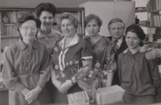 Когда в мае 1945 года уже был подписан пакт о капитуляции Германии, часть, где служила Анастасия Ивановна, не расформировали, а отправили на Дальний Восток, где разворачивались боевые действия с Японией. Какие бы тяготы ей не пришлось испытать на войне, были и моменты радости. Именно здесь она встретила своего Коленьку – Николая Александровича, свою светлую и чистую любовь, будущего своего супруга. Лишь в конце декабря 1945 года они были демобилизованы. Николай Александрович привез свою Настеньку в Казань, устроил ее на работу в Молотовский РК ВКП(б) на должность партийного статистика, а затем она пришла работать в библиотеку КХТИ и проработала здесь до своего ухода на пенсию в 1978 году. Анастасия Ивановна и сама была светлым человеком, и вся ее семья отличалась доброжелательностью и радушием. Супруги передали все свои лучшие качества детям: сыну Володе и дочери Алевтине. Анастасия Ивановна уже ушла из этой жизни, но до сих пор в отделе сохраняется порядок в документах, созданных ею, а в коллективе хранится добрая память о ней…». Слева направо: Никифорова Р.И., Хасанова А.Х., Константинова А.И., Гарфель О.А., Корнилов В.А., Гайнуллина Ф.Г. Источник: УНИЦ |