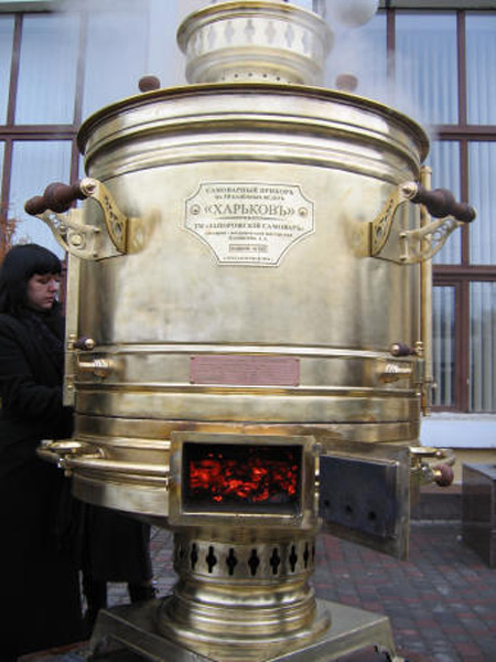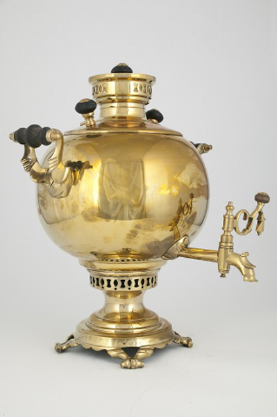 «Самовар, самоварец, самоварчик»… читаем мы у Даля. Так ласково звали его в прошлые времена. Красавец, душа домашнего чаепития и символ семейного благополучия, неотъемлемый атрибут русского застолья, имеет, оказывается, далеко идущие корни. Установлено, что принцип его действия был известен еще во времена античности: в металлическую емкость, наполненную водой, бросали раскаленный камень, который доводил воду до кипения. Невероятно, но напитки из самовара пили еще римляне. Аутепса - так назывался самовар Древнего Рима; он был похож на высокий кувшин, внутри которого находились две емкости – для угля и жидкости. В этом же устройстве можно было охладить напиток в жаркие дни, вместо угля используя лед. Аналогичные приспособления до сих пор существуют и в Китае. Глубокая чаша на поддоне, снабженная поддувалом и трубой, именуемая «Хо-Го», изготавливается из металла и фарфора. В таких чашах, как правило, подаются супы или кипящие бульоны. В России самоварный феномен возник далеко не сразу: пили мед, любили пиво, квас, сбитень и готовили эти напитки мастерски. Сбитень — любимый напиток Древней Руси, который приготовлялся с медом и душистыми травами готовили в «сбитеннике» — «прадедушке» русских самоваров. Внешне такой «сбитенник» напоминал чайник. У него был большой изогнутый носик, а внутри впаян кувшин, куда накладывались угли. Однако во все языки мира вошло именно русское слово «самовар», наряду с «матрешкой», «балалайкой» и другими наименованиями атрибутов русского языка. В происхождении слова «самовар» ясно прослеживается одна идея предназначения этого «медного друга» человека – «сам варит». Хотя в разных уголках России этот самый аппарат называют по-разному: в Ярославле это «самогар», в Курске – «самокипец», вятичи же величают его «самогрей». (Заметим в связи с этим, что существует даже версия, что слово «самовар» имеет…. татарское происхождение и происходит от слова «снабар», что в переводе означает «чайник»). Тем не менее принято считать, что самовар как металлический сосуд для кипячения воды с краном и внутренней топкой в виде высокой трубки, наполняемой углями, изобрели на рубеже XVIII в. русские мастера. Кому принадлежит первенство в изготовлении данного аппарата – вопрос спорный и до сих пор невыясненный. Имеются исторические сведения, свидетельствующие о том, что еще в 1710-1720 гг. ими уже пользовались на Урале. И появились они там благодаря тульскому купцу Демидову, который еще до этого времени отправился на Урал вместе с неким «медных дел мастером», положившим начало «династии» самоваров. Материальным подтверждением тому служит найденный при выкопке колодца в 2001 году самовар, на котором стоит дата «1712 год». И надо полагать, это не подделка… А вообще же до этой находки самым старым самоваром, дошедшим до наших дней, считался самовар с клеймом «Иван Лисицын в Туле» 1778 года выпуска. Первые самовары были похожи на сбитенники. Собственно технология изготовления самовара по сути не претерпела «Самоварное разнообразие» на обширных просторах Российской империи проявлялось не только в форме, но и в тех материалах, из которых они изготавливались. Основным материалом для изготовления самоваров служили: «медь зеленая» (латунь), «медь красная» [сплав меди (50-63%) и цинка (37-50%)], томпак [сплав меди (85-90%) и цинка (10-15%)]. Случалось, что сам