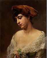 Но счастье было коротким: художник ослеп. Вместе с мужем Виттория Лапченко уезжает на Украину. Молодой осталась она и на портрете, написанном Ивановым в 1834 году. Это даже не портрет — этюд: он не закончен. Мы видим с удивительной нежностью и бережностью вылепленное лицо. В нем нет ничего слащавого, сентиментального, Это строгий, серьезный, написанный с бесконечным уважением к красоте человека, портрет. В нем, как в капле утренней росы,отразилось искусство Александра Иванова: нежность его сердца, бесконечное преклонение перед красотой человека, жажда свободы и счастья... Дата её смерти неизвестна, и это - Знак Судьбы. Ведь настоящие шедевры Красоты и Гармонии - бессмертны... Юлия Павловна Маковская (Леткова) (1859 - 1954) – вторая жена художника Поклонник женской красоты, Константин Егорович часто писал портреты своей Юлии Павловны, которая считалась первой красавицей в Санкт-Петербурге. Репин называл ее «ангелом неизреченной красоты». У очень многих дам на портретах читаются черты Юлии Павловны. В несколько сеансов был написан первый ее портрет «в красном берете» который стал родоначальником прославленных женских портретов.