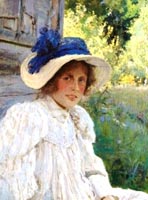 К сожалению, почти все работы Елены Александровой погибли в годы гражданской войны в Крыму, где провела она остаток своей жизни и была похоронена в феврале 1921 года. Сохранилась лишь малая часть работ. Кончаловская Ольга Васильевна (1878 - 1958) – жена российского художника П.П.Кончаловского, дочь В.И.Сурикова. Дочери художника Ольге Васильевне предстояла большая и интересная жизнь. Она станет женой знаменитого живописца Петра Кончаловского. Их дочь и внучка Сурикова — Наталья — выйдет замуж за Сергея Михалкова, известного баснописца, драматурга, автора двух гимнов: Советского Союза и Российской Федерации. В этом браке родятся два сына — известные кинорежиссеры Никита Михалков и Андрей Михалков-Кончаловский, правнуки великого художника. Ольга Васильевна, обладавшая незаурядным умом и сильным самостоятельным характером, разбиравшаяся в делах творческих так же хорошо, как и в делах житейских, была равноправной с Художник все свои работы представлял на суд супруги, Ольги Васильевны. Если она говорила: «Не то», то участь холста была предрешена — «под нож», или Пётр Петрович использовал их под новые произведения, безжалостно загрунтовывая предыдущую работу. В 1932 году художник приобрел дачу в Буграх – старый усадебный дом, под Малоярославцем, в Калужской области. Здесь Кончаловские проводили большую часть зимы и все лето. Ольга Васильевна вспоминала: «С тех пор меньше путешествуем: но зато русская природа средней полосы завладела Петром Петровичем». Много трудились, наслаждались природой - это совершенно чётко видно на пейзажах Кончаловского той поры, чуть не аромат пионов или цветущих яблонь можно уловить! Ходили в местную церковь, хлебосольно принимали гостей, растили уже внуков в той же дисциплине и любви, что и детей. Словом, наконец-то свили настоящее родовое гнездо, явление не совсем обычное для Советского Союза. И тем не менее, если говорить современным языком, это был абсолютно жизнеспособный совместный проект двух любящих сердец - Петра и Ольги, Дадочки и Лелечки, как они ласково продолжали называть друг друга даже на склоне лет. Ольга Васильевна умерла в 1958 году в возрасте 80 лет. Забела-Врубель Надежда Ивановна (1867 - 1913) - выдающаяся певица. Окончила Петербургскую консерваторию, пела на Мариинской сцене. В 1896 г. вышла замуж за знаменитого художника Врубеля, увековечившего ее в некоторых своих картинах. И муж и жена были — каждый в своей области — большими художниками, и их брак означал содружество людей искусства, друг друга понимавших и вдохновлявших. Врубель был очень музыкален и принимал самое близкое участие в разучивании ролей Забелы, к его советам она всегда прислушивалась. Все его костюмы и грим он придумывал сам. Она, правда, не могла принимать столь же прямого участия в работе Врубеля над картинами, но её пение, сама её артистическая индивидуальность значили для него необычайно много, так что в конечном счёте она помогала ему даже больше, чем он ей. В ней как в артистке он нашёл тот русский поэтический образ, который давно ему мнился, мечтался и ускользал от него. Забела стала поистине его музой: её портрет-фантазия, написанный в год женитьбы, так и назван — «Муза».
