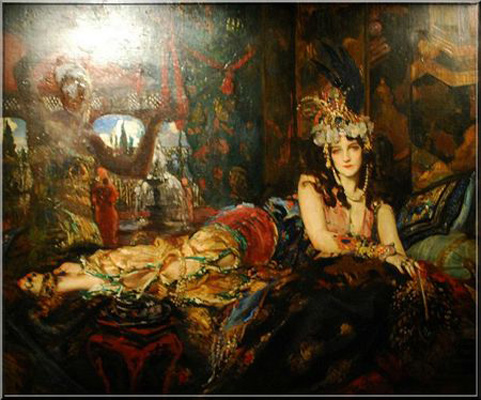 Ида Рубинштейн, "сомнамбула и миф", родилась не осенью 1883 года, как утверждают метрические записи Харьковской синагоги. Мифом она стала, прожив долгую, почти восьмидесятилетнюю, жизнь. Сомнамбула – таким эпитетом наградили Иду учителя в ранней юности, настолько эта девушка была необычна как внешне, так и внутренне. Родилась в семье миллионеров из Харькова. После окончания гимназии в Петербурге изучала театральное искусство в Москве, а затем во Франции, Германии, Англии. Несколько раз Рубинштейн начинала учиться у К. Станиславского, собиралась поступить в Художественного театр. В 1906–1907 гг. она начала учиться танцевальному искусству у выдающегося русского хореографа М. Фокина, который, оценив природные данные и дарование Рубинштейн, привлек ее к постановке пьесы О. Уайльда «Саломея» в театре В. Комиссаржевской. Спектакль был запрещен цензурой как «безнравственный», однако Рубинштейн в 1908 г. с большим успехом исполняла в Петербурге, Париже и Лондоне танец Саломеи, поставленный для нее Фокиным. В 1909–10 гг. Рубинштейн участвовала в первых «Русских сезонах» С. Дягилева в Париже, исполняя партии Клеопатры, Зобеиды и другие; ее выступления имели шумный успех. Хотя Рубинштейн не владела После оккупации Франции Рубинштейн поселилась в Лондоне, где работала в госпитале для французских и английских солдат. В 1945 г. вернулась во Францию, вскоре приняла католичество и последние десять лет в полном уединении прожила на юге страны. Более двадцати пяти лет Ида покоряла Париж, в Россию она уже никогда не вернулась. Ее родным городом стал Париж. В 1934 году французское правительство наградило ее орденом Почетного легиона, а годом позднее сделало ее гражданкой Франции. Даже свою смерть она обставит так же загадочно, как выстраивала жизнь. В завещании оговорит все, что следует сделать, когда ее не станет: никаких официальных извещений о кончине; время кремации и захоронения должно быть сохранено в тайне; на постаменте никаких надписей — ни имени, ни дат. Только две буквы — I.R. - Ида Рубинштейн Ида Рубинштейн умрет от инфаркта миокарда в 1960 году. О ее смерти мир узнает из маленькой заметки в одной из парижских газет. Юон Клавдия Алексеевна (1883 – 1965) – жена и муза Константина Фёдоровича Юона.
