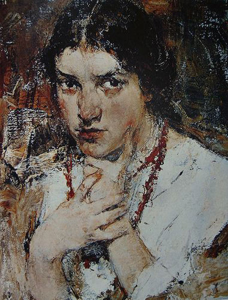 Явленский Алексей Георгиевич — русский художник-экспрессионист, живший и работавший в Германии. В 1902 году возлюбленная художника Елена Незнакомова родила художнику сына, Художник не раз писал портреты жены, первый – в 1894 г., когда Елене было тринадцать лет. Хрупая и женственная Елена – любимая его модель. Используя контрасты, «сталкивая» красный цвет фона и синий цвет тюрбана ее голове, художник добивается в портрете колористической насыщенности и декоративности. Она была не только любимой супругой, но и настоящей музой для художника, стала прототипом очень многих его работ, посвященных женскому лику. Пережила мужа на 24 года. Мария Петровна Лентулова – жена художника А.В.Лентулова.