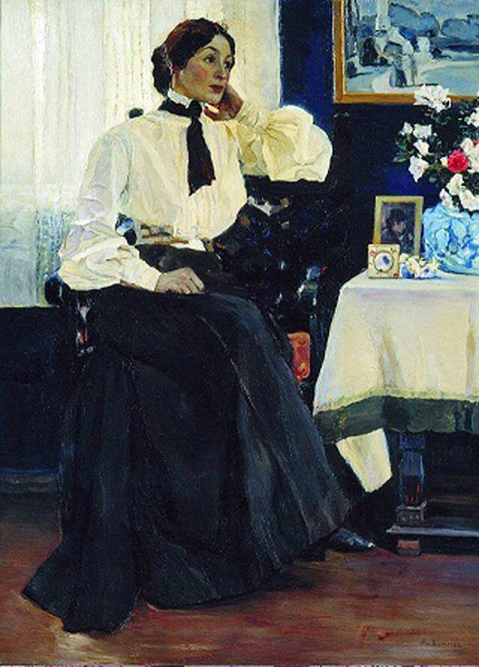 Портрет Екатерины Петровны, созданный художником в 1905 году на их киевской квартире, стал первым портретом Нестерова, который он признал художественным произведением, достойным появиться на выставке. Сколько грусти, тоски и разочарования, разлада с внешним миром содержат в себе его ранние женские образы, столько душевного спокойствия и гармонии, радостного, но тихого любования миром заключено в этом портрете. Позже художник создал еще много портретов своей супруги, она позировала ему для иконы и росписей в Марфо-Мариинской обители. Музы И.Репина