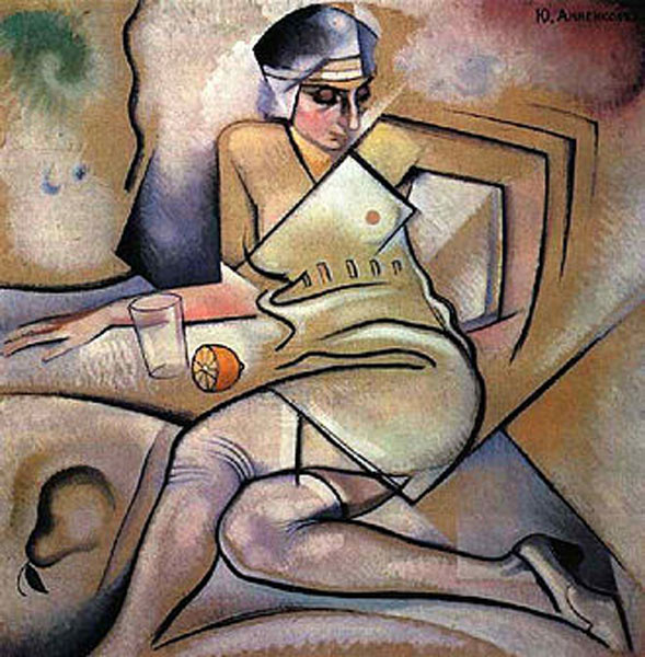 Восхищение знаменитого художника неординарной личностью собственной жены осталось во многих портретах Натальи Борисовны: читающей, пишущей за столом, сидящей за роялем… Репин был очарован своей женой. Писал ее, конечно, лепил скульптурный профиль. А она читала ему зарубежные газеты, приобщала к помощи сиротам да обездоленным и создавала семейный уют вперемежку с громкими выходками и эпатажем перед гостями. Почему они расстались? Наверное, устали друг от друга. Стареющий Репин, которому и в молодые годы не слишком удавалось сдерживать свои бурные порывы, и громкая яркая женщина с трудом уживались под одной крышей. Оба они были людьми со сложными характерами, с оригинальными взглядами на жизнь, поэтому часто утомляли друг друга. Раздражаясь, затевали ссоры, которые обычно завершались разъездами. Первые признаки чахотки у неё появились ещё в 1905 году. Заболевшую жену Репин на несколько месяцев отвез в Италию на лечение. Болезнь на время отступила, но потом появилась вновь. Нордман повторно уехала в Италию, а потом в Швейцарию. Репин, по воспоминаниям современников, расставался с женой без сожаления, отъезд как бы подводил черту под давно наметившимся разрывом. В 1914 году она году умерла. Долго и мучительно любил Репин еще одну женщину - молодую художницу Е. Званцеву. Е.Н.Званцева (1864-1921) – художница, основательница студии рисования и живописи в Москве и Санкт-Петербурге, ученица и возлюбленная И.Репина. Не закончив Академию художеств, Елизавета Николаевна в 1897 году вместе со своим другом детства К. А. Сомовым отправляется в Париж, где работает в известных школах французских художников. Вернувшись в Москву в 1899 году, открывает художественную школу, в которой преподавали известные художники К.Коровин, В.Серов и другие. В 1906 Елизавета Николаевна открывает частную художественную мастерскую в Петербурге, которая просуществовала до 1916 года. В студии Е. Н. Званцевой преподавали такие известные художники как Леон Бакст, Мстислав Добужинский, Кузьма Петров-Водкин. После революции Елизавета Николаевна некоторое время жила в Нижнем Новгороде, затем переехала в Москву. Семьи у неё не было и, всё нерастраченное чувство материнства она перенесла Музы Юрия Анненкова В творческой и личной жизни художника женщины играли значимую роль. Среди его женских образов есть портреты близких подруг, жен и спутниц, вдохновительниц, моделей, тех, кого он любил, ценил, кем восхищался, с кем поддерживал любовные или дружеские связи. Он был трижды женат. Первая его жена — Елена Гальперина (1897 - 1980), актриса и танцовщица - «босоножка», последовательница Айседоры Дункан. В 1917 году он написал ее портрет, который находится сейчас в Русском музее: молодая женщина в короткой прозрачной рубашке, чулках и туфлях сидит за столиком, прихотливо изогнувшись. Это образ роковой женщины, эффектной, холодной, отстраненной и уверенной в себе. Ее облик вкупе с такими простыми, выразительными деталями, как стакан, лимон и груша, напоминает о лихорадочно-богемной атмосфере 1917 года, которая описывается Анатолием Мариенгофом в романе «Циники». Елена Борисовна окончила балетную школу, в 1914 поступила в труппу Московского художественного театра. Затем выступала в различных театрах. В 1924 получила командировку в Париж. Занималась ручным рукоделием для заработка, пробовала сниматься в к