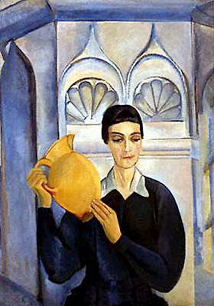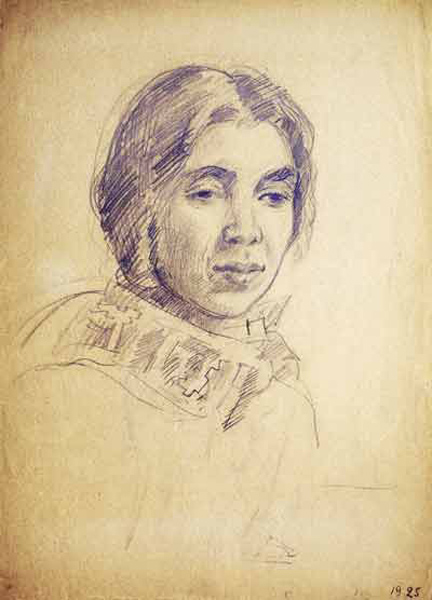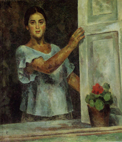 Наталия Гончарова и Михаил Ларионов познакомились во время учебы в Московском училище живописи, ваяния и зодчества, по воспоминаниям художницы, в 1901-м, на этюдах в Зоологическом саду. Вскоре Ларионов переехал в ее квартиру. Они были единомышленниками, друзьями, очень близкими людьми. В том, что касается искусства, их развитие шло в одном направлении, как художники они оба оказывали влияние друг на друга, порой работали в соавторстве. Их имена как художников-авангардистов, футуристов, «лучистов» (лучизм — стиль, изобретенный Ларионовым) чаще всего упоминают вместе. Выставлялись они чаще всего тоже вдвоем. Работать над «Русскими сезонами» Дягилева в Париж они тоже уехали вместе — сначала в 1914 году, затем в 1915-м. Во Франции пара органично влилась в круг местной богемы. Молодые люди устраивали благотворительные балы для начинающих живописцев. В доме Гончаровой-Ларионова часто бывал Николай Гумилев, позже Марина Цветаева, которая очень сдружилась с Натальей Сергеевной. Через несколько лет они обосновались в Париже, как оказалось, на всю жизнь. Кстати, свой брак Гончарова и Ларионов официально зарегистрировали только в 1955 году. Натальи Сергеевны Гончаровой не стало 17 октября 1962 года. Бебутова Елена Михайловна (1892-1970) – живописец, график, сценограф, жена художника П.В.Кузнецова. Елена Михайловна Бебутова - дочь крупного инженера-путейца, внучка известного генерала Василия Осиповича Бебутова, героя Кавказских походов и Крымской войны. Елена Михайловна получила европейское образование, прекрасно знала традиции русского и армянского искусства, сама была талантливой художницей. Семья Бебутовых олицетворяла взаимообогащение традиций армянской и русской культуры. Яркая и утонченная восточная внешность Елены Михайловны явилась воплощением эстетического идеала ее мужа - художника. Он написал несколько необыкновенно выразительных портретов своей жены - она то в строгом темном, то ярком красном платье, то загадочно улыбается, то полна какой-то особой возвышенной задумчивости.