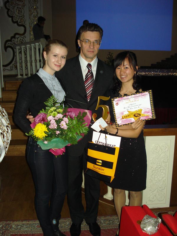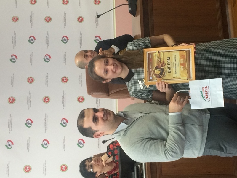 Аспирант Сибиева Л.М. на награждении благодарственным письмом и премией Министра экологии и природных ресурсов РТ Шадриков А.В. по результатам НИР, г. Казань, апрель 2018 года |