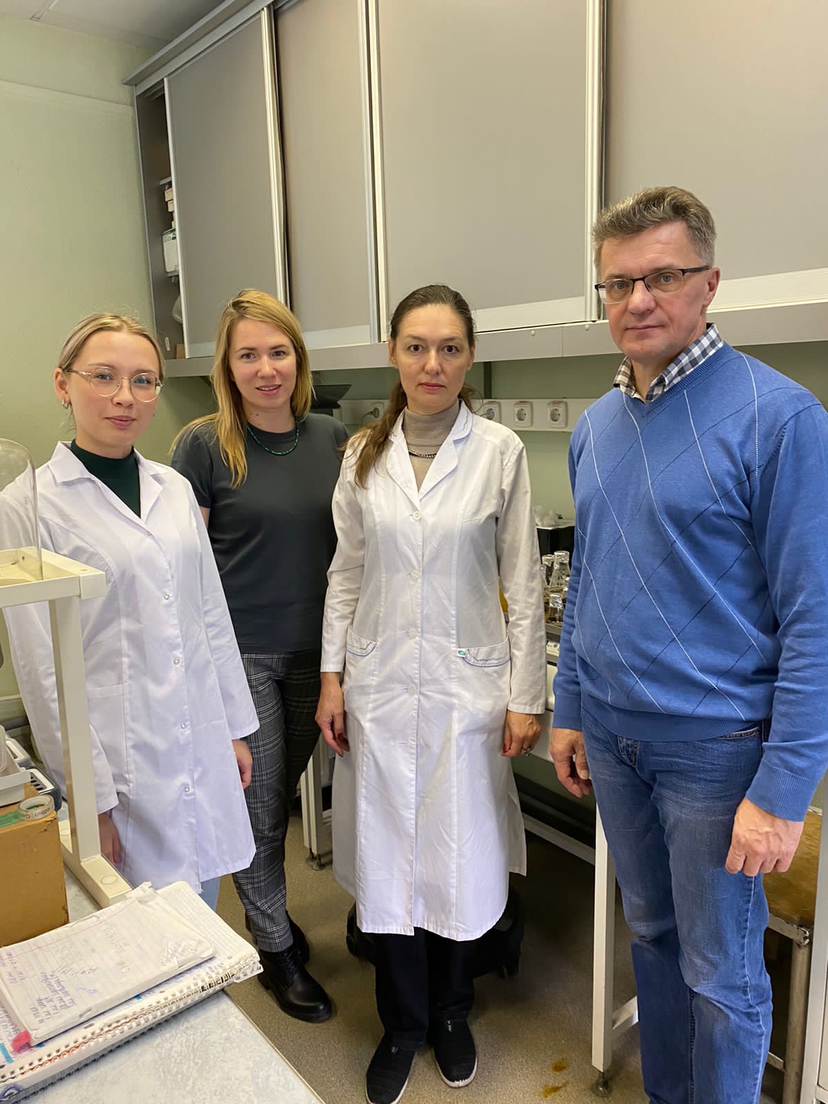 Аспирант Хасанова А.А., доцент Перушкина Е.В. и зав. каф., проф. Сироткин А.С. на стажировке в лаборатории молекулярной биотехнологии, ИЭГМ |