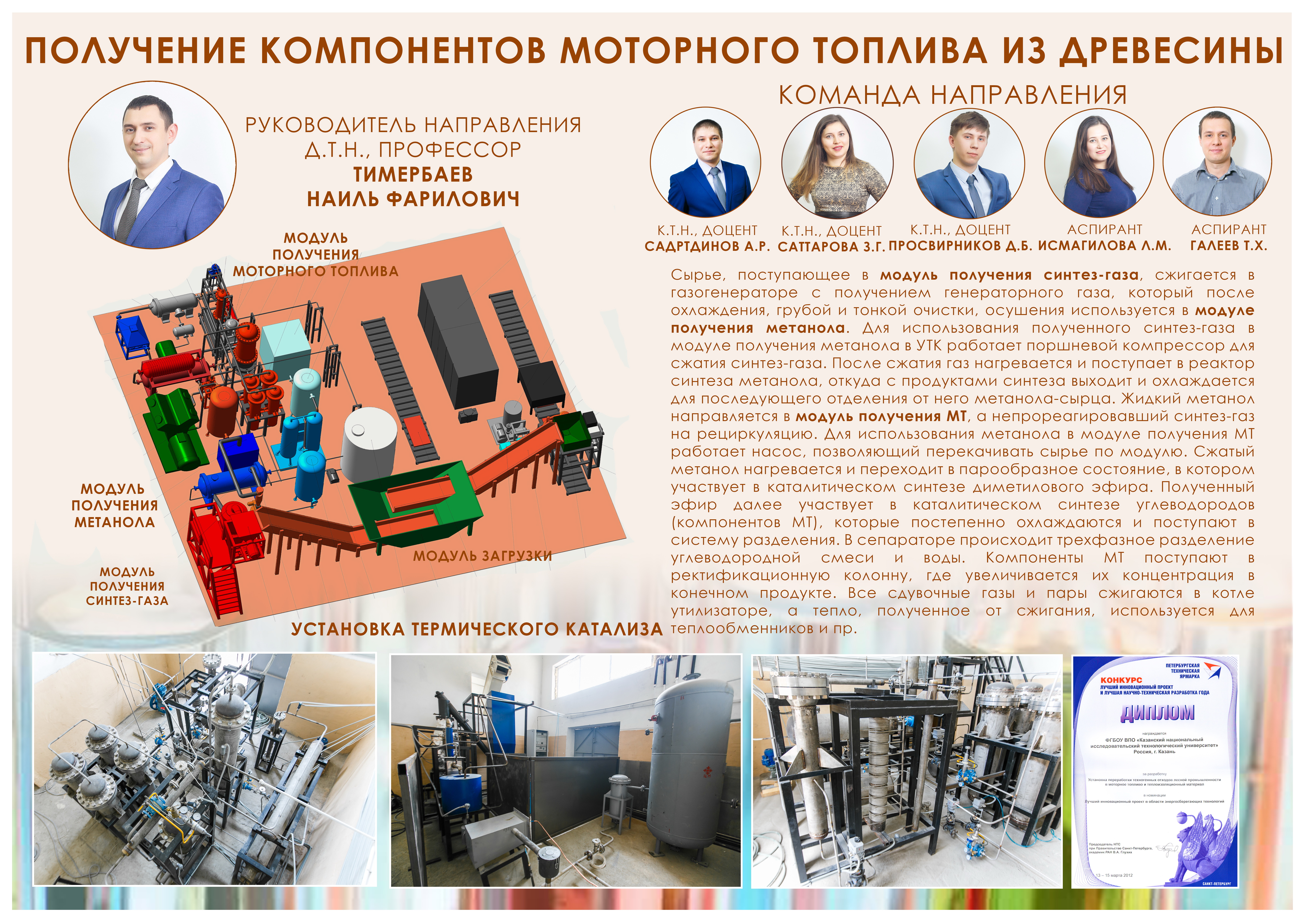 Разработки кафедры отмечены дипломами и медалями выставок различного уровня. Так, на V Московском международном салоне инвестиций и инноваций (г. Москва, ВВЦ, 15-18.02.2005) серебряной медалью награждена "Вакуум-осциллирующая камера для сушки пиломатериалов из твердых пород древесины", бронзовой медалью награждена "Установка для пирогенетической переработки древесных отходов". На международной выставке научно-технических достижений в КНР (г. Шеньян, 19-21.09.2006) разработки кафедры в области сушки и пиролиза древесины награждены серебряной медалью. Разработки кафедры отмечены дипломами международного симпозиума "Ресурсоэффективность и энергосбережение", который проводился ежегодно начиная с 2000 года в г. Казань при поддержке Министерства экономики и промышленности РТ. Разработка и внедрение установки для термической переработки древесных отходов отмечена дипломом экологического форума "Человек. Природа. Наука. Техника" (г. Казань, 24-27.05.2006г.), а также дипломом III международной специализированной выставки "Нефтепереработка. Нефтехимия. Экология" (г. Казань). В 2012 году разработка сотрудников кафедры «Установка переработки техногенных отходов лесной промышленности в моторное топливо и теплоизоляционный материал» отмечена дипломом и медалью на конкурсе «Лучший инновационный проект и лучшая научно-техническая разработка года».