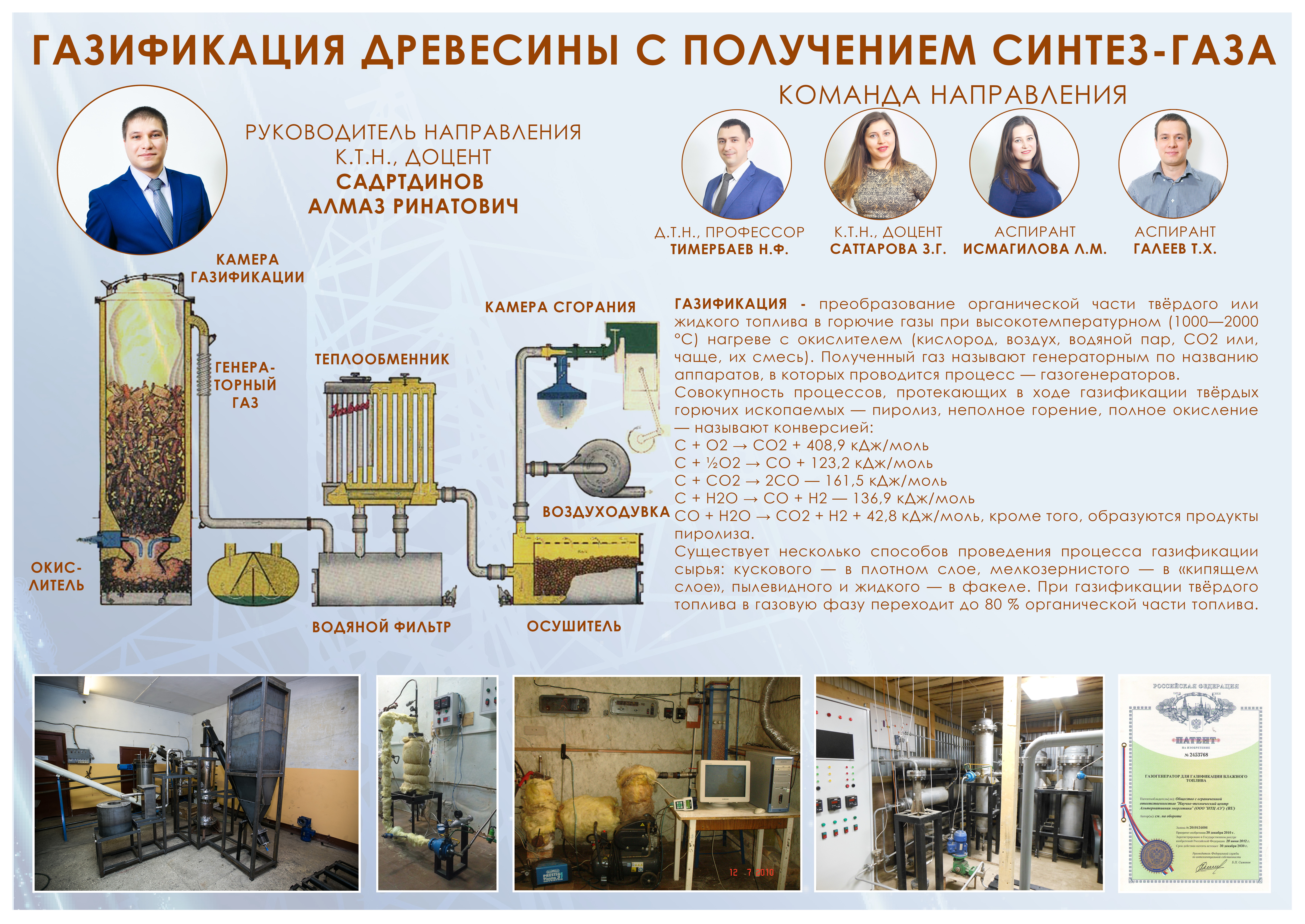 Научно-исследовательская работа кафедры ведется по следующим направлениям: • Конвективная сушка древесины; улавливание ценных и токсичных летучих компонентов при переработке древесины методами конденсации и адсорбции; экстрагирование веществ из коры и зелени древесины; разработка древесно-полимерных композиционных и теплоизоляционных материалов (научный руководитель - проф. Сафин Р.Г.) • Пирогенетическая переработка древесины (научный руководитель - проф. Тунцев Д.В.) • Композиционные материалы на основе древесины (научный руководитель – доц. Саттарова З.Г.) • Газификация древесины с получением синтез-газа (научный руководитель – доц. Садртдинов А.Р.) • Химико-термическая модификация древесины (научный руководитель - проф. Просвирников Д.Б.)