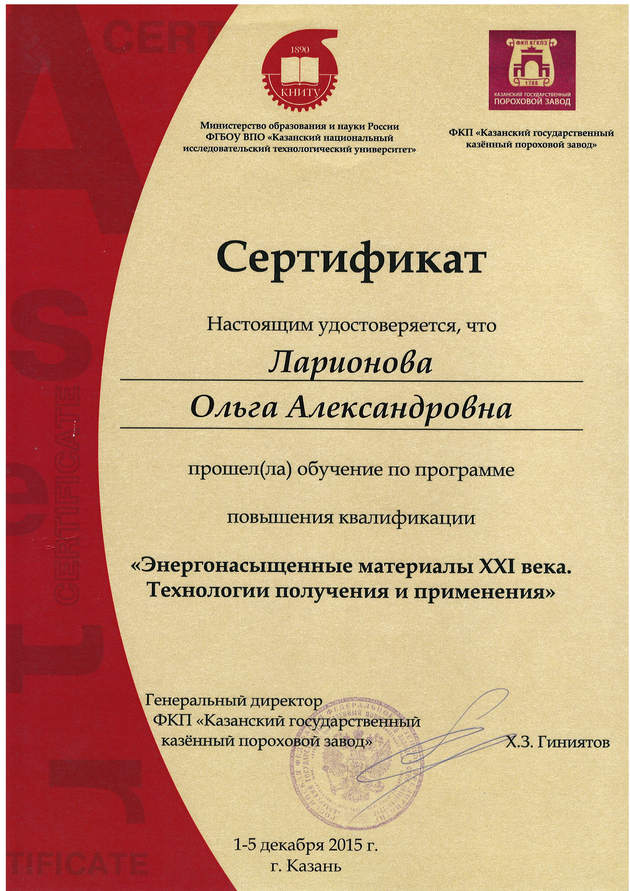 Хайрутдинов Ф.Г., Шарнин Г.П., Гильманов Р.З., Никитин В.Г., Ларионова О.А. , Разработка рациональных методов получения 2,2I-бисимидазола / Вестник технологического университета. 2013, т.16, в.10, с.75-78 (ISI)