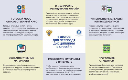 20.03.2020 Минобрнауки России и НИУ «ВШЭ» подготовили простую инструкцию для преподавателей, планирующих создание реализацию своих дисциплин в электронной дистанционной форме. Приложение: 6 шагов для преподавателей.pdf, 306.6 КБ