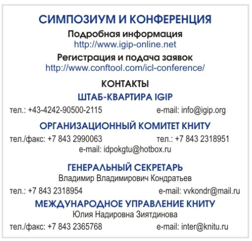 Международное общество по инженерной педагогике IGIP Казанский национальный исследовательский технологический университет CTI Технический институт Каринтии, Австрия