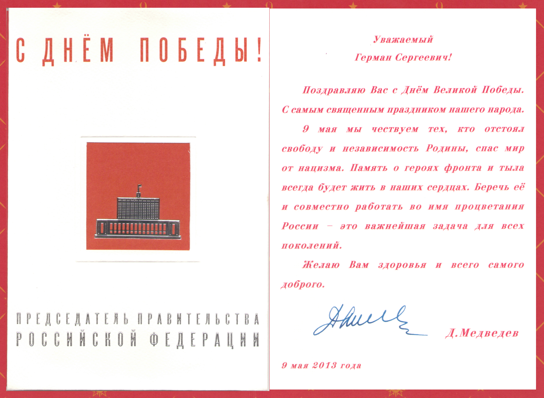 Поздравления В. Путина и Д. Медведева с Днём Победы