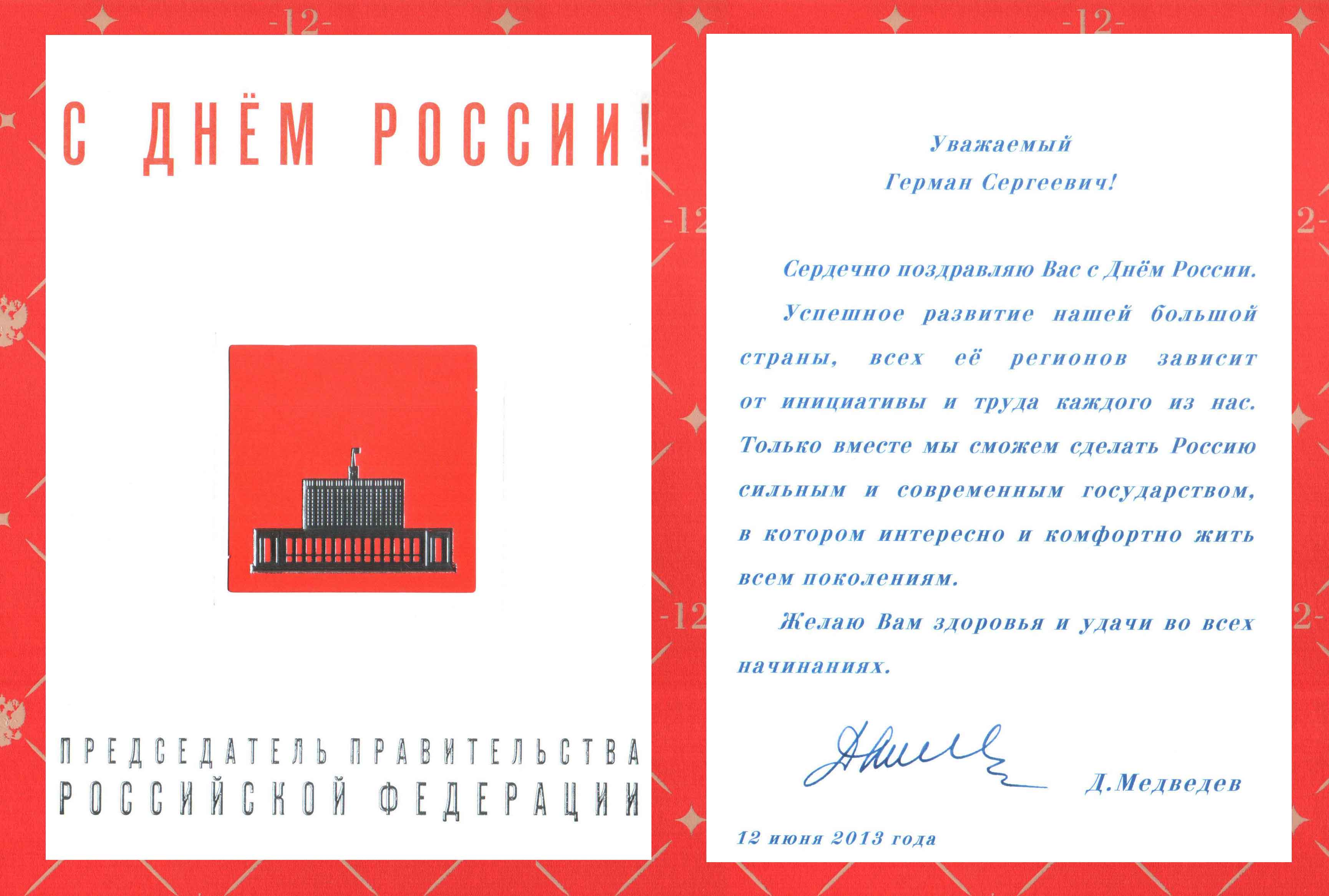 Поздравление В.В. Путина и Д.А. Медведева с Днём России!