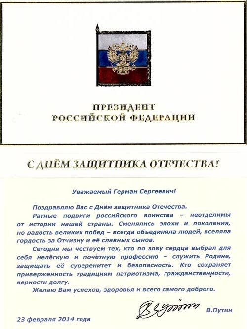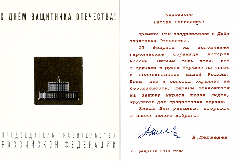 Поздравления Президента РФ и председателя Правительства РФ с Днем защитника Отечества!