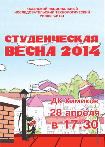 Приглашаем студентов и сотрудников КНИТУ на гала-концерт фестиваля "Студенческая весна-2014", который состоится в 28 апреля в 17.30 в ДК Химиков.