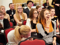 Церемония началась под аккомпанемент чарующего саксофона и сопровождалась показом шедевров мирового короткометражного кино. Интереснейшую подборку фильмов, специально для фестиваля, организовал известный киновед, педагог школы «Точка.Кино» Антон Шутов. После просмотра каждый из присутствующих мог сделать свой выбор относительно симпатий к той или иной картине, а также высказать мнение о силе замысла и драматургии произведения. Организаторы не побоялись включить показ классики современного кино в сценарий фестиваля, где в конкурсной программе соревнуются любительские фильмы. «Попкорн – это наш общий маленький шаг навстречу большому искусству», - отметил в приветственном слове от организаторов Владимир Бандорин, курирующий в КНИТУ работу со СМИ. Всего в юбилейном конкурсе участвовало 18 студенческих видеоработ, среди которых были фильмы, клипы и даже ролики, снятые на камеру мобильного телефона. Самые достойные вошли в число претендентов на победу по 7 номинациям. Кстати в нынешнем году появилась новая: «Лучший замысел». В ней члены жюри были растроганы простой, но очень чувственной мини-историей о важности внимания к близким людям: «Удовольствие дарить». Её авторы Анастасия Филина и Антон Суховой (команда «Efimыч Production») одержали победу в нелегком соревновании с представителями творческого объединения «Yaratam Studio», которые в данной номинации были представлены сразу двумя работами: роликом «В тебе…» о настоящей дружбе и вере в лучшее, а также удивительно красивым видеопосвящением женщинам - «Язгы матурлык». Вообще простота и непосредственность обозначили главный тренд Попкорна-2014. Так победителем в номинации «Лучший монтаж» стал Эмиль Хамдамов, приславший на конкурс ролик длительностью всего 15 секунд. При этом на экране разворачивается целая история о том, как проходит студенческое утро и что необходимо для того, чтобы сделать день счастливым! Среди претендентов на победу в данной номинации оказалась также Альфия Валиева. Её фильм «4.20» члены жюри назвали «добротной классикой монтажа», которой не хватило до первого места лишь небольшой «изюминки». Зато эксперты оценили игру главной героини этой социальной драмы – Эльвиры Юсуповой, признав её лучшей актрисой фестиваля. Лучшим сценаристом стал Динис Вадигуллин (команда «Die Mannschaft»), который не только создал концепцию ролика об особенностях обучения в технологическом университете и написал к нему закадровый текст, но ещё и сам озвучил. Причём сделал это интонационно очень выверено и интересно. Так что возможно, в самое ближайшее время мы услышим Диниса в одном из новых видеопроектов КНИТУ. Но главным триумфатором фестиваля стала команда «Браzzерс» с фильмом «Заместители». Пять номинаций, из которых в трёх одержана уверенная победа: Леонид Ефимов («Лучший оператор»), Рафкат Сахапов («Лучшая мужская роль»), а также Гран-при «Лучший фильм» (режиссер Анатолий Горшков). На первый взгляд эта работа, снятая в жанре гротескной пародии на комиксные экранизации про супергероев, может показаться простым дурачеством на камеру веселой компании друзей. Однако, стремительно развивающийся сюжет, забавные диалоги главных героев и досконально продуманные ракурсы, указывают на серьёзную предварительную работу всех участников команды. Члены жюри отметили, что «Браzzерс» точно зна