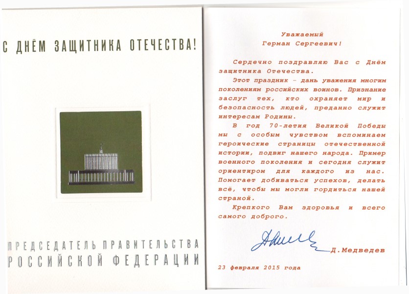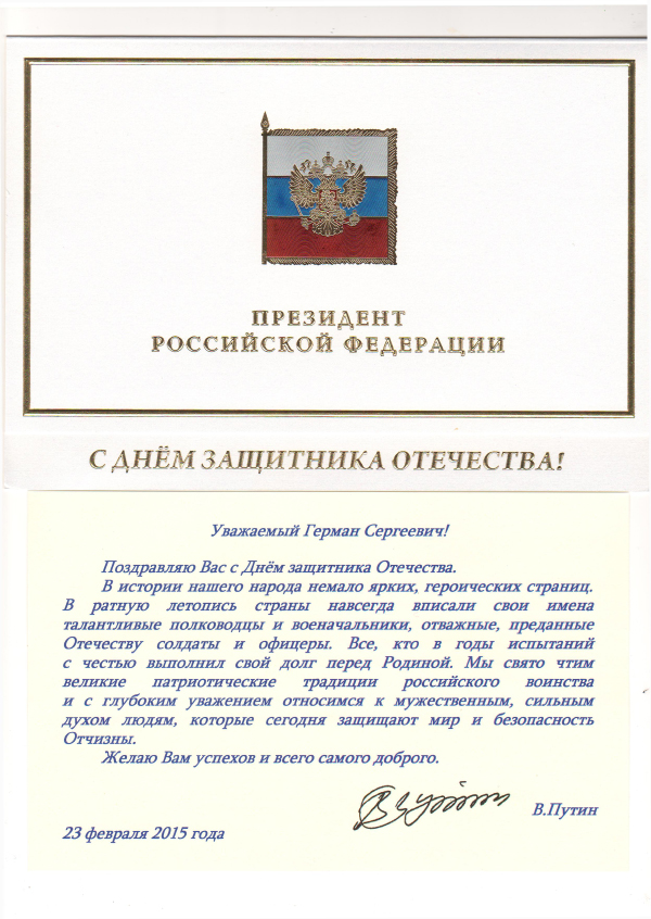 Поздравления В.В. Путина и Д.А. Медведева с днем защитника Отечества!