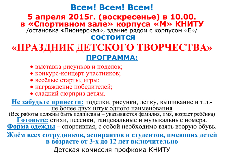 05.03.2015 5 апреля 2015г. (воскресенье) в 10.00