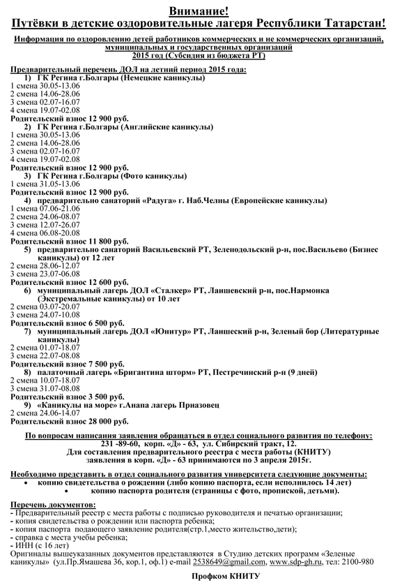 Внимание! Путёвки в детские оздоровительные лагеря Республики Татарстан!