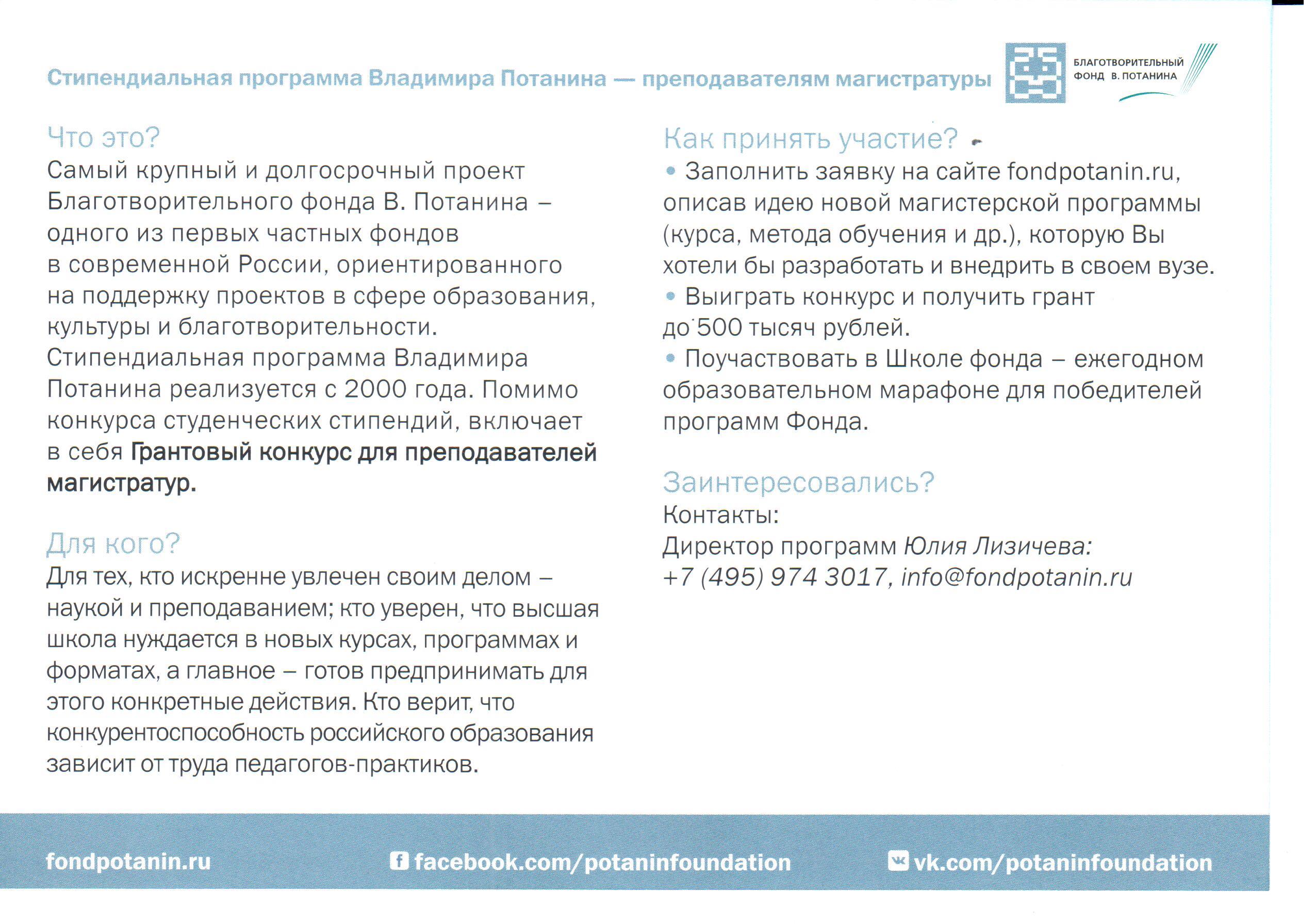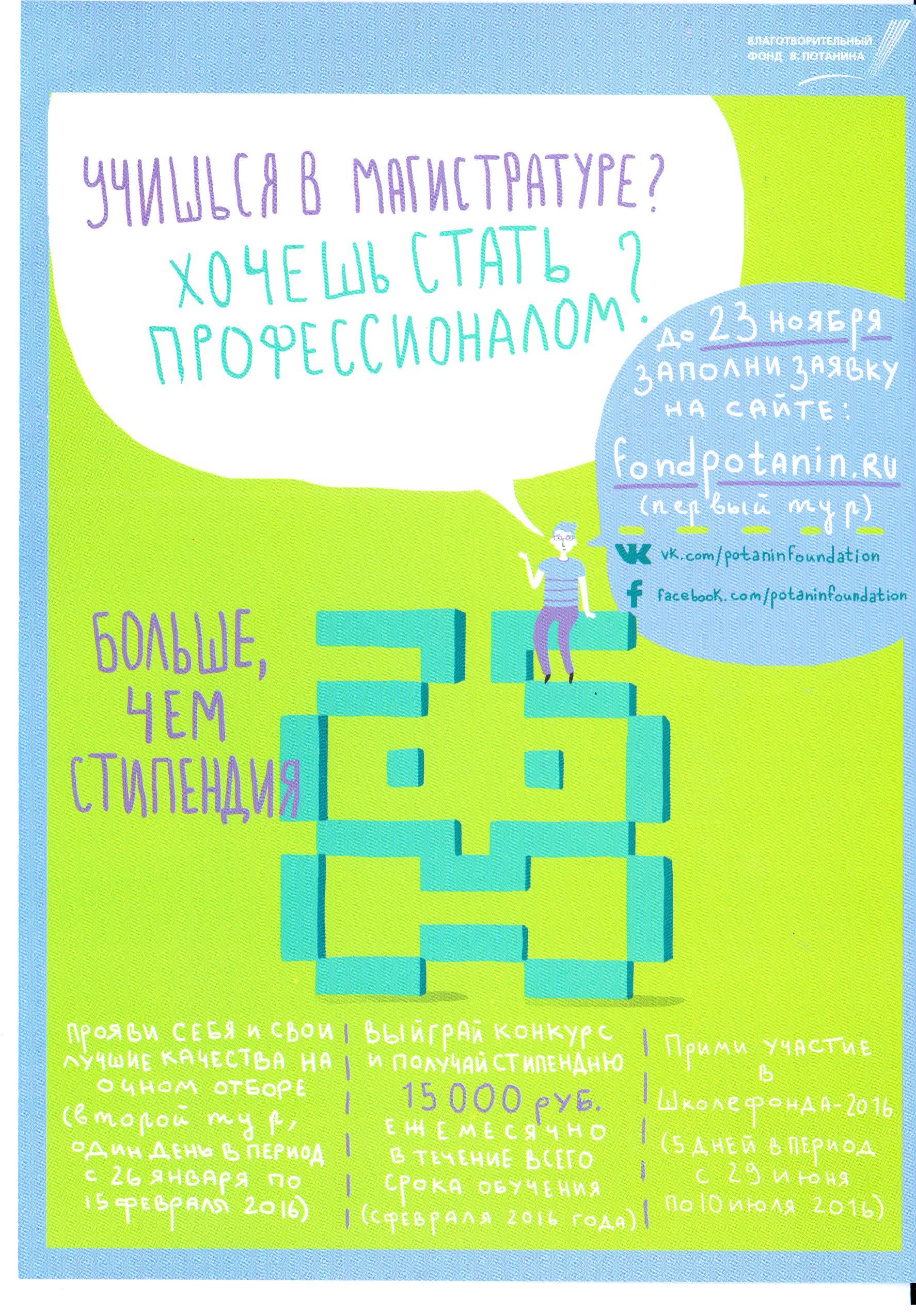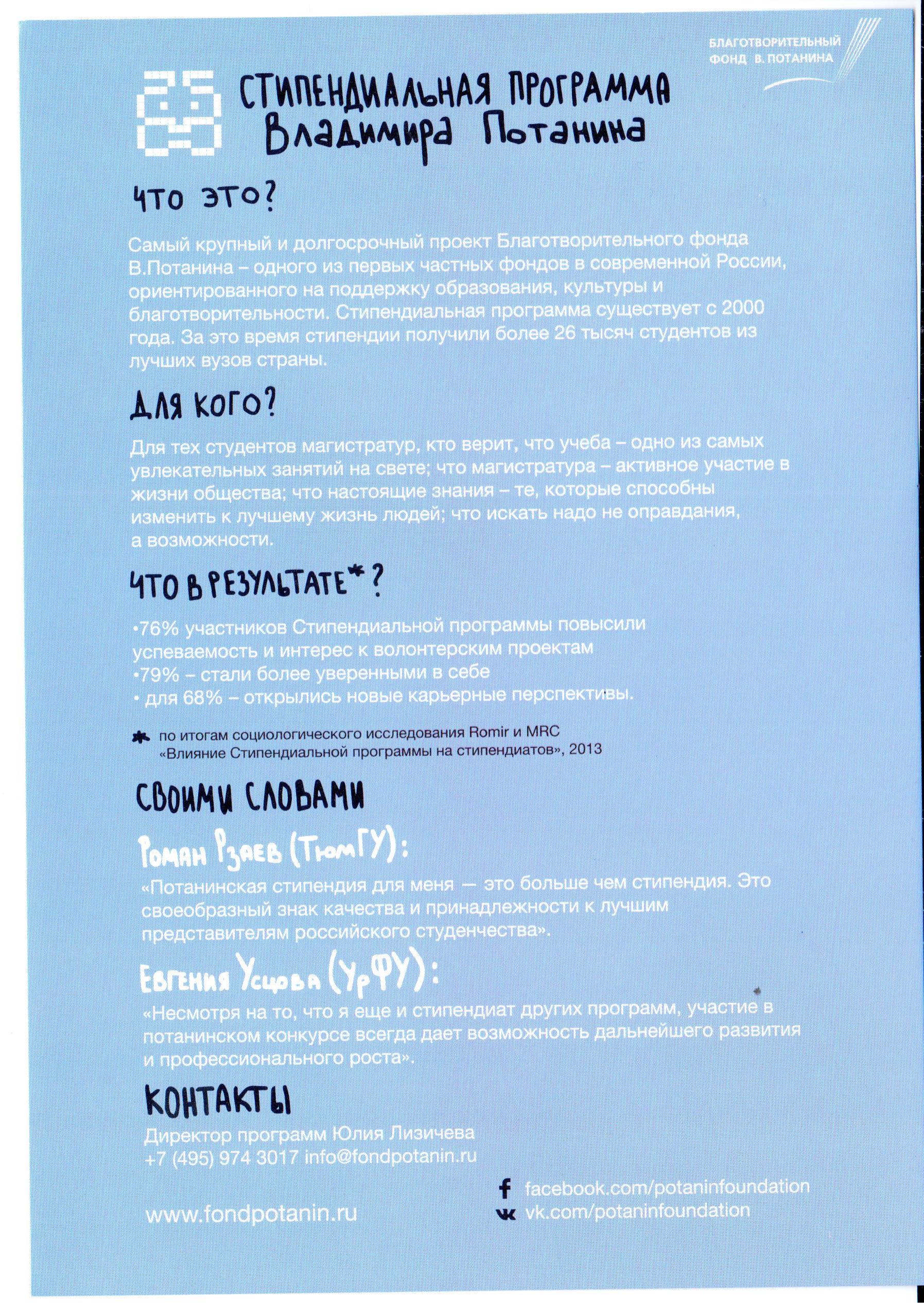 13 октября 2015г. в 11.00 в нашем университете состоится презентация стипендиальной программы В. Потанина.