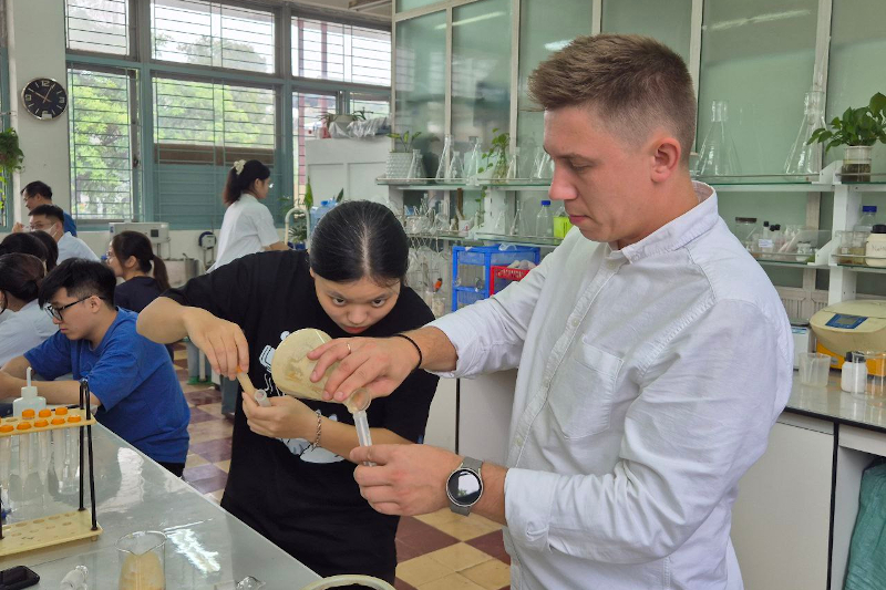 18.10.2024 Dmitry Prosvirnikov, Professor of the Department of Wood Processing, and Denis Tuntsev, Head of the Department of Chemical Cybernetics, have returned from a research trip to the School of Chemistry and Life Sciences at Hanoi University of Science and Technology. The visit of our scientists became possible thanks to the grant of the Government of the Republic of Tatarstan “Algarysh”. KNRTU professors conducted joint research with colleagues from the working group of the Faculty of Chemical Engineering in the laboratory of nanocellulose on the processing of plant agricultural waste into nanocellulose. They also conducted joint research with the working group of the School of Food and Biotechnology on obtaining high-protein concentrates of vegetable protein and microbial protein from feedstock. KNRTU professors also visited the Research Institute of Pulp and Paper Industry of Vietnam, got acquainted with laboratories and pilot production line of cellulose and paper. At the meeting with Cao Van Son, Head of the Research Institute, they discussed about the possibility of joint work in the field of research on the processing of plant biomass into cellulose and nanocellulose. It should be noted that the development of technologies for the production of feed protein from biomass by-products is currently a priority all over the world. The possibility of extracting valuable biological products and nanomaterials from this type of feedstock attracts more and more attention of both governmental and business organizations seeking to effectively utilize biomass resources and implement closed-cycle economy approaches. During working meetings with Vice-Rector of the School of Chemistry and Life Sciences Nguyen Hong Lien, Associate Professor of the School of Chemistry and Life Sciences Le Quang Zien, Dean of the Faculty of Chemical Engineering Dang Trung Dung, Associate Professor of the Department of Bioengineering Pham Tuan Anh, the possibilities of continuing joint research in the future under international grants in the context of the emerging expansion of cooperation in the field of science and technology between Russia and Vietnam, as well as ways to intensify academic exchanges of students and teachers between the two universities were discussed. Based on the results of the meetings, an international cooperation agreement between KNRTU and Hanoi University of Science and Technology is being prepared, as well as joint publications with colleagues in international magazines.