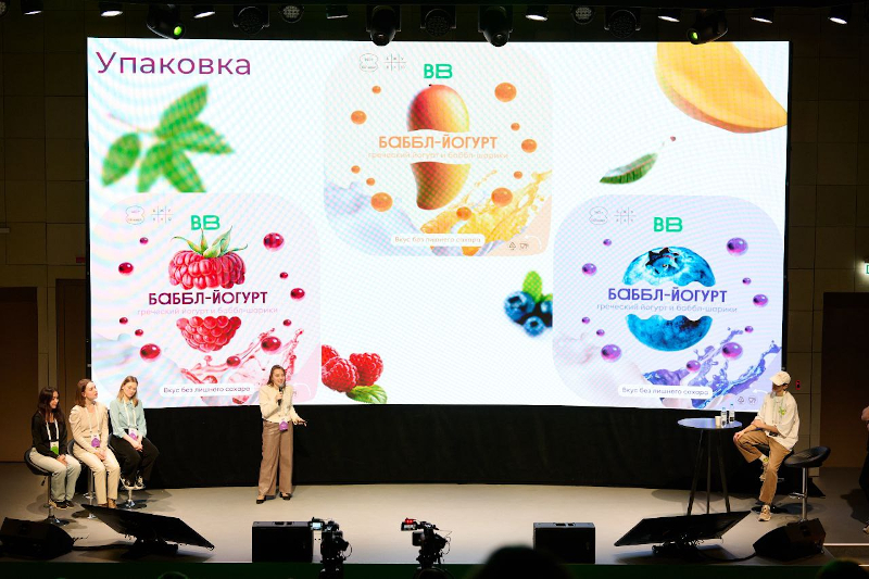 26.12.2024 "M&Bt — Bubble Yogurt" — a probiotic yogurt with fruit-and-berry bubbles developed by a team of students and postgraduates from the Department of Industrial Biotechnology of KNRTU – entered the top 10 best innovative dairy products to participate in the final of the International Business Incubator "Collab 2K24" organized by the company VkusVill. At the final held on December 24th, the KNRTU product took first place in the dairy track and won a special prize from the project partner — JSC Zelenodolsk Dairy Processing Plant. Postgraduate student Kamila Kazimova, along with Masters Degree students Alexandra Chernikova, Alevtina Shulnikova, and Arina Sharipova, presented a product that stands out for its high nutritional value, attractive organoleptic properties, and aligns with the dietary preferences of modern youth. The team's scientific advisor is Yulia Shcherbakova, Associate Professor of the Department of Industrial Biotechnology and Candidate of Biological Sciences. The final round took place at the "Lomonosov" cluster, which is part of the Moscow State University's Innovation Science and Technology Center "Vorobyovy Gory".. It should be noted that teams from ITMO University and ROSBIOTECH with projects involving high-protein yogurts also competed for places in the dairy track. The product that earned the trust and high praise of VkusVill experts is expected to appear on the shelves of stores within the Federal Network. We congratulate the winners and wish them further success in creating innovative health food products!