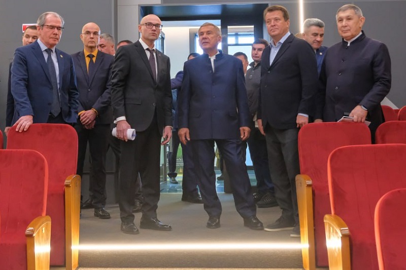 31.01.2025 On January 25th, Rustam Minnikhanov, Rais of the Republic of Tatarstan, visited KNRTU building “D”, where he met with students and inspected the renovated infrastructure facilities of the university – cultural and leisure center and sport complex. Among the invitees were Ilsur Metshin, Mayor of Kazan, Ilsur Khadiullin, Minister of Education and Science of the Republic of Tatarstan, Rinat Sadykov, Minister of Youth Affairs of the Republic of Tatarstan and Marat Aizatullin, Minister of Construction, Architecture and Housing of the Republic of Tatarstan. Yury Kazakov, Rector of KNRTU, welcomed the guests and presented the university sites. The meeting began with an introduction to the representatives of KNRTU student organizations – the press-center of the Union of Students and Postgraduates, headquarters of the student squad “Technologist”, creative group CHAI, student sports club KRONOS and search team “Chemist”. Then Rustam Minnikhanov made a trip around the university building: he visited the cafeteria, the branded areas and also got acquainted with two facilities opened after the major repairs. The renewed cultural and leisure center of KNRTU is supplied with a modern media equipment, include dance and rehearsal halls, costume rooms and even a music studio. The capacity of the assembly hall is 460 people. After the renovation, an additional light sources were added to the room, and the ceiling of the hall was completely transformed to improve acoustic characteristics. Very soon the cultural and leisure center will become the heart of student creativity and social life: it will be used for festivals, student concerts, events of the university, the city and the Republic, as well as for various seminars and conferences. The sports complex (building “M”) became another renovated space of KNRTU. After a major repair, the equipment and inventory were completely replaced with new ones, three functional zones, new locker rooms and showers were installed here. “Kazan National Research Technological University is a backbone organization, a member of the “Priority – 2030” and “Advanced Engineering Schools” Federal Projects. KNRTU students are lucky – they study in a highly demanded university, as our Republic is primarily industrial. Your majors will be the highest priority today and tomorrow. In the renovates facilities we saw that is everything is new and functional. Together we will work on further plans and participate in the development of the university. Have a good journey!” said Rustam Minnikhanov, addressing the student activists. “On behalf of the university staff and all our students, I would like to thank the leadership of the Republic of Tatarstan and the city for this wonderful gift. I am sure that the fully renovated sports complex and culture and leisure center of KNRTU will become the favorite attraction for our students,” said Yury Kazakov.