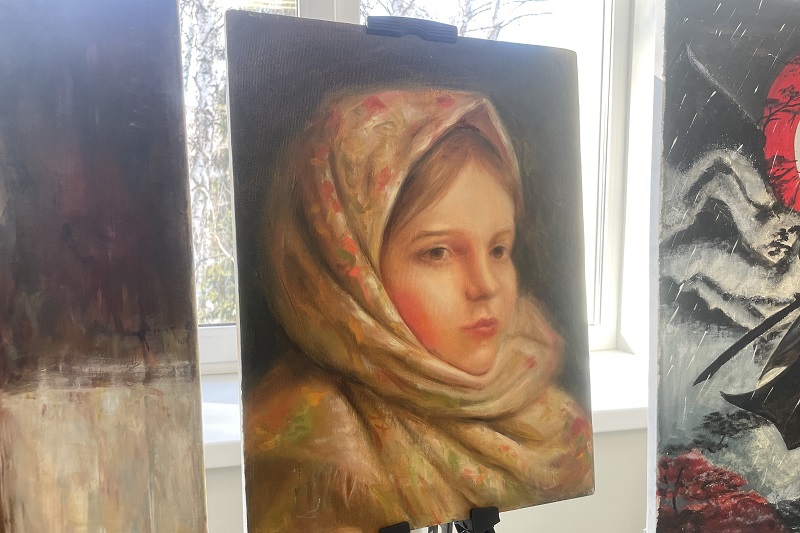 14.02.2025 On the second floor of the building “L”, next to the SIBUR company brand zone, an exposition of paintings by students of the Institute of Light Industry, Fashion and Design of KNRTU is presented. “The exhibition originated spontaneously. A kind of incentive for the exhibition organization was the acquaintance of First-Year Bachelor’s Degree students with KNRTU laboratories: we gave a task to write what the university is associated with. First-year and senior students, as well as undergraduates and graduates presented their works” - said Elena Zabello, Chair of the Educational Workshop of the Department of Service Technologies. The paintings presented at the exhibition are painted in various techniques – these are oil, acrylic and graphic works. The subjects also vary: from psychological portraits of women to the inner spaces of the university. In one of the paintings, students easily recognize the university’s semi-rotunda with the colonnade of Building “A”. “In my opinion, the main building of KNRTU with a colonnade looks majestic and therefore is associated with the university. The second of my paintings at the exhibition depicts Kremlin: Kazan inspires me with its architecture,” explains Anastasia Larina, First-Year Bachelor’s Degree student. From another canvas, a girl with a scarf with Russian ornaments looks thoughtfully towards the audience. The author of this painting was jointly searched for a long time by the Press Center of KNRTU and faculty of the Institute of Light Industry, Fashion and Design. When the artist was found, it turned out that at the time of the creation of this article she was abroad: after graduation she worked as a senior lecturer at the Institute of Light Industry, Fashion and Design, and later moved to Turkiye, where she is now working in the field of interior design. “I was surprised when I got the call: I gave the painting of a girl in a scarf to the Institute back in 2018. At the class, we were given a reference, which was the first time I painted with oil paints. We studied a special technique: the base had to be pressed into the canvas with fingers, and the details of the drawing had to be painted with a brush. The canvas came out realistic. The best pieces were requested by the faculty to be left at the Department. Unexpectedly, the girl in a scarf that I loved became an exhibit six years later,” says Ekaterina Yarullina, a graduate of KNRTU.