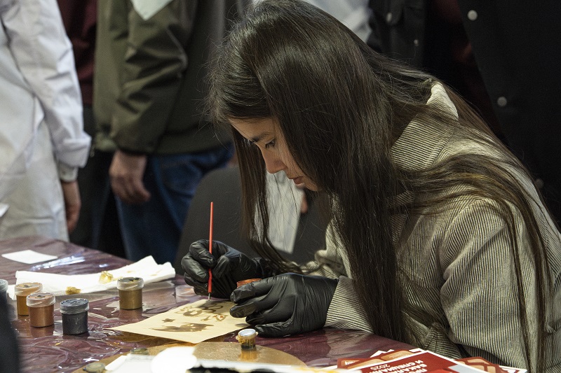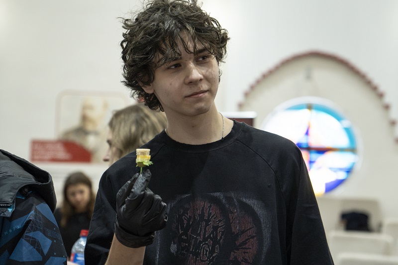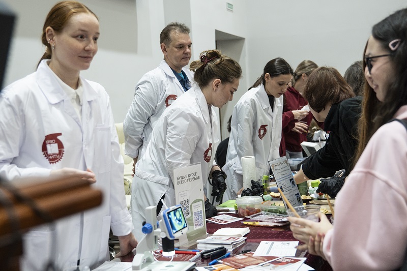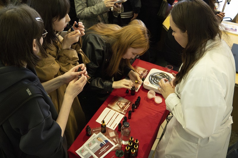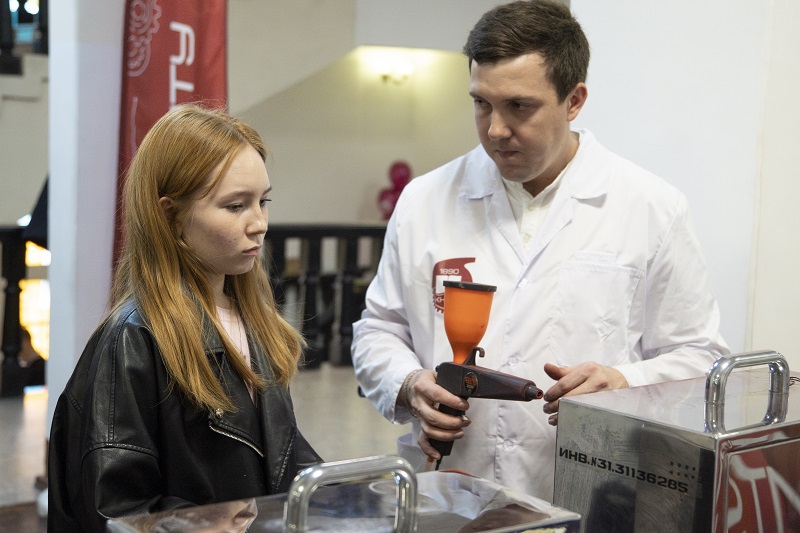 14.10.2025 11 октября в КНИТУ состоялось одно из главных событий университетской осени – День открытых дверей. Каждого из более шестисот пришедших на праздник будущих абитуриентов ждали с нетерпением: все институты приготовили для них и их родителей увлекательные и познавательные мастер-классы. Действительно, выбрать было из чего: институты и кафедры провели 23 творческих мастер-класса в своих профильных областях. Так, Институт нефти, химии и нанотехнологии предлагал нарисовать картинку нефтью, сделать с помощью нанотехнологий брелок из металла своими руками, а также оказать первую помощь пострадавшим. У стенда Института управления, автоматизации и информационных технологий – много серьезных юношей. Ребятам предлагали самим поуправлять технологическим процессом, чтобы на столе заработал реальный мини-конвейер. – У нас написана программа, но с ошибками, абитуриенты должны изучить детали и самостоятельно реализовать компьютерную программу, управляющую движением конвейера, – рассказывает студент 4 курса Адель Рамазанов. – Ребятам нужно ровно провести коробку по конвейеру с помощью сенсоров. Если они не справляются – конечно, подсказываем и помогаем! – Это было интересно и познавательно, я давно занимаюсь ИТ, – говорит Асаф Хуснетдинов, одиннадцатиклассник из Батырево (Чувашия), который выполнил задание «на ура». Проводили мастер-классы, в основном, студенты, а преподаватели рассказывали о направлениях обучения, отвечали на вопросы о поступлении и будущей карьере ребят. – Нам очень много рассказывали сами студенты: они рекламировали свои институты, очень вдохновенно обо всем рассказывали, были заряжены позитивом и энтузиазмом», – рассказывают сестры Арина и Елизавета Федоровы (Лиза специально приехала на мероприятие из Тольятти). Угадать свою будущую профессию с помощью метафорических карт предлагал Институт управления инновациями. Здесь можно было протестировать свой эмоциональный интеллект, построить этапы логистических цепочек и правильно упаковать товары для увеличения продаж. Мастер-классы здесь также увлеченно проводили ребята с кафедры философии науки и социальной работы и кафедры логистики, они рассказывали не только о своих направлениях, но и в целом о КНИТУ, промышленных партнёрах вуза, перспективах трудоустройства и яркой студенческой жизни, в которую они вовлечены сами. У большого стола Института пищевых производств и биотехнологии было очень вкусно, здесь показывали чудеса пищевой химии: можно было собрать пищевые конструкторы – молочные йогурты с разными вкусами, пирожное-картошку, вкусные сырные канапе. Можно было также заглянуть и в электронный микроскоп, увидеть действие фитонцидов против микробов. – Запомнилось, как нам провели мастер-класс с йогуртами, девочки очень понятно и интересно рассказали, – поделились впечатлениями выпускницы-технологи казанского Международного колледжа сервиса Софья Костромина и Екатерина Горностаева. Институт химического и нефтяного машиностроения показывал цифровые измерительные приборы, работу тепловых двигателей и аппаратов и, конечно, технологию обработки материалов. Особенно юным абитуриентам нравилось наблюдать живой ток из катушки Теслы. Поделки из эпоксидной смолы, авторские духи и «секретный код» фотохимии можно было создать у стендов Инс