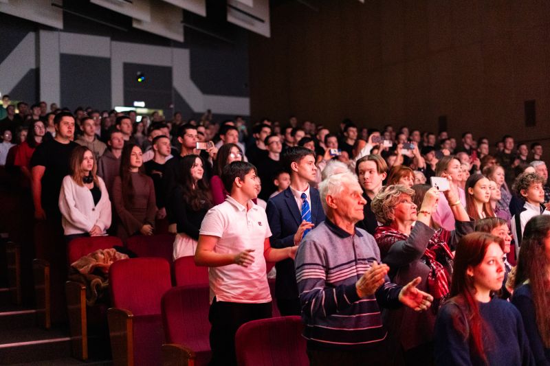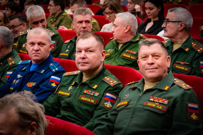 27.02.2026 В КНИТУ состоялся праздничный концерт, посвящённый Дню защитника Отечества. Студенты и курсанты Военного учебного центра в сотрудничестве с Институтом управления инноваций подготовили масштабную программу — с песнями военных лет, стихами, танцевальными номерами и пронзительными моментами памяти. С приветственным словом к собравшимся обратился ректор КНИТУ Юрий Казаков. Он открыл мероприятие и поздравил всех с праздником: «Очень приятно в этом обновлённом зале открывать праздник, посвящённый Дню защитника Отечества. Однако особые слова благодарности сегодня — нашим офицерам, нашему Военному учебному центру. Они действительно в полной мере соответствуют понятию Защитников Родины. Многие наши офицеры имеют солидный боевой опыт и сейчас передают свои знания и навыки курсантам ВУЦ». После речи ректора ведущие напомнили, что 23 февраля — один из важнейших дней для страны: «Наши стойкие и мужественные защитники Отечества повсюду на пути врага: на Куликовом поле, под Бородино, на полях Великой Отечественной, в горах Афганистана, Чечни, Дагестана, Сирии и на территории специальной военной операции». Концертная программа объединила десятки участников. Студенты взводов исполнили легендарную «Катюшу», «Марш танкистов», песни «В руках автомат», «Два орла», «333», «Война», «Смуглянка», «Небо славян». Танцевальный коллектив «Шахнас» подарил зрителям номер «От Волги до Енисея», а дуэт Болдачева Матвея и Мисаревич Софьи исполнил «Майский вальс». Звучали и стихи: Ахметзянов Максим (ИНХН, группа 441-26) прочёл «Россию», Абросимов Тимур (ИУАИТ, группа 841-41) — «Рассказ танкиста», Сайранов Михаил (ИНХН, группа 431-32) — «О награде». Завершил поэтическую часть студент Сызранцев Аким (ИНХН, группа 4121-42) с легендарной песней «Офицеры». Финальным аккордом концерта стало выступление сводного хора студентов и офицеров ВУЦ КНИТУ с песней «День Победы» — зрители в зале подпевали стоя. Анастасия Илендеева